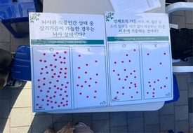 - 교내 발표회에서 생명잇기 홍보 부스를 운영합니다. (자살 예방, 장기기증 활동 및 홍보)