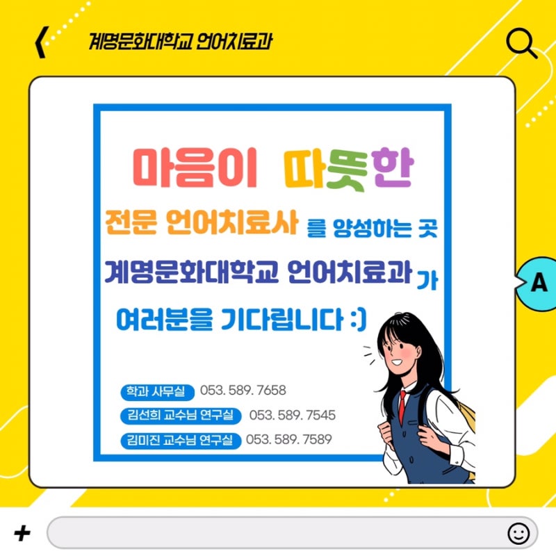 언어치료과 학과 사무실: 053. 589. 7658 또는