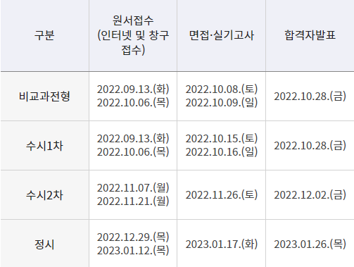 비교과전형 : 2022.10.08(토) ~ 2022.10.09(일)